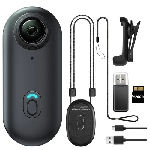 The package includes everything you need: the 128GB body camera, a magnet pendant, safety cord, portable back clip, and USB cable. This comprehensive kit ensures you have all necessary tools to start recording right away.